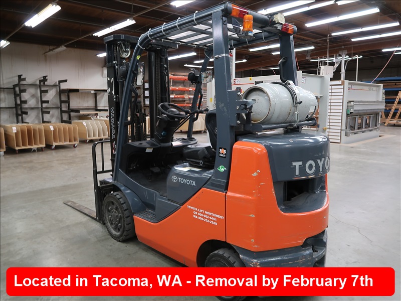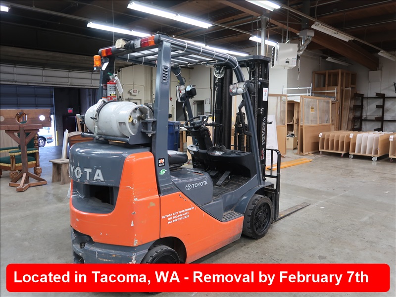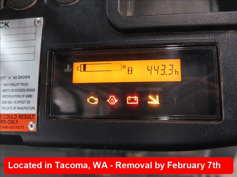 4,500 LB HRT FORKLIFT, 189" 3-STAGE MAST, SIDE SHIFT, PROPANE, FORK LEVELER, HOUR METER READS: 443 (MUST STAY UNTIL 8 AM, TUESDAY, FEB 4TH)