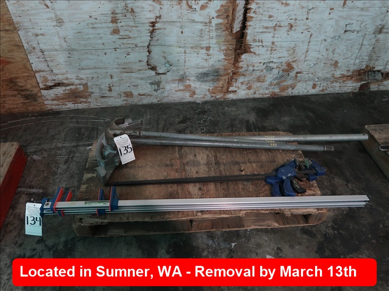 LOT, (2) PITTSBURGH 60" F-STYLE BAR CLAMPS & (2) 36" QUICK GRIP BAR CLAMPS