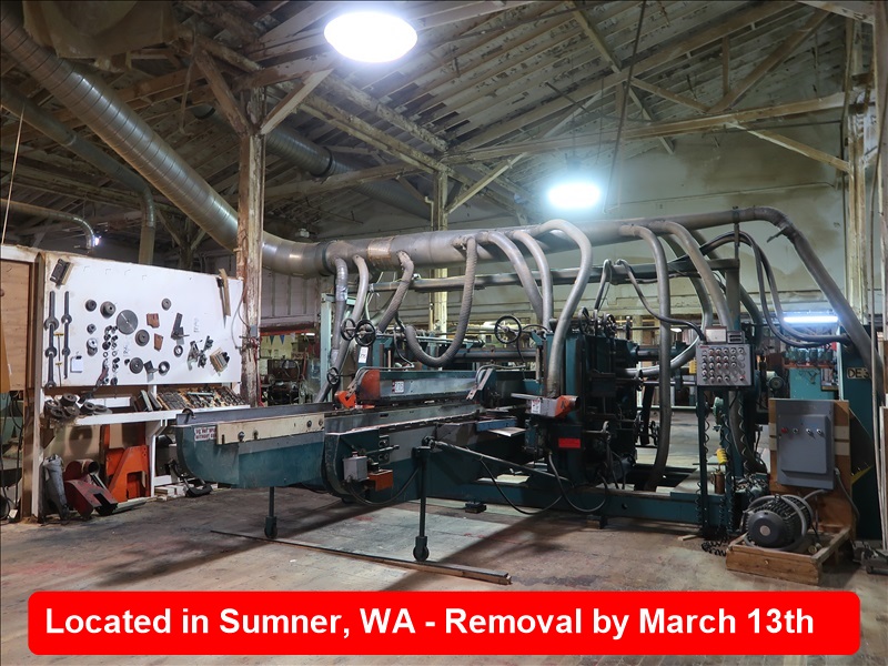 DOUBLE END TENONER, 10’ CAPACITY, (12) 5 HP-10HP SAWS, INCLUDES CORNER ROUNDING & DOUBLE DADO HEADS, RAPID TRAVERSE, 13.8 HP PHASE CONVERTER, MARKED SPARE PARTS, ELECTRICS & PIPING