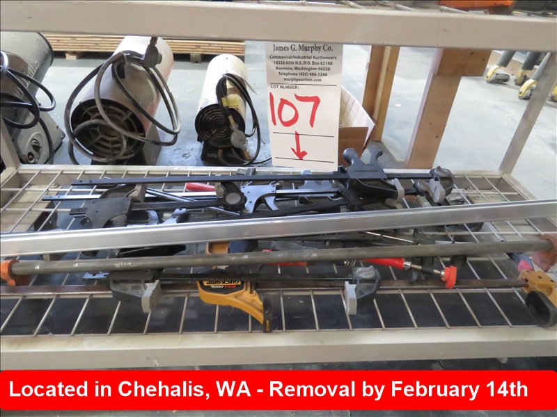 LOT, BAR CLAMPS ON THIS SHELF, ASSORTED SIZES