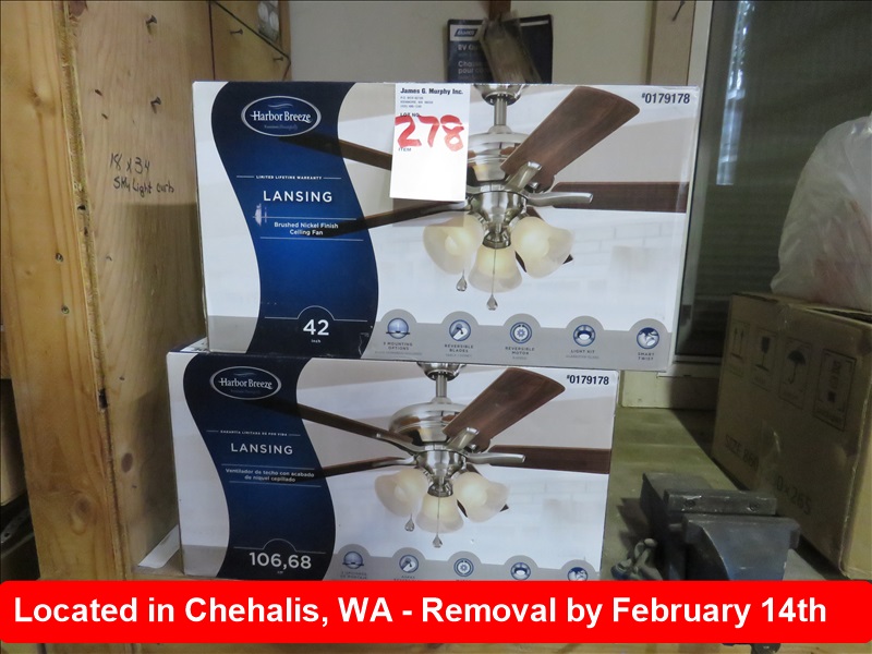 LOT, (2) HARBOR BREEZE BRUSHED NICKEL FINISH CEILING FAN/LIGHT FIXTURES