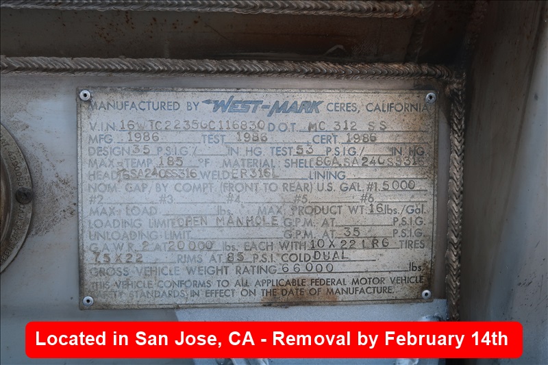 5,000 GAL SS T/A TANK TRAILER, LINED FOR ACID, EXTERIOR 8 GA, 316 SS DOUBLE DIAPHRAGM PUMP