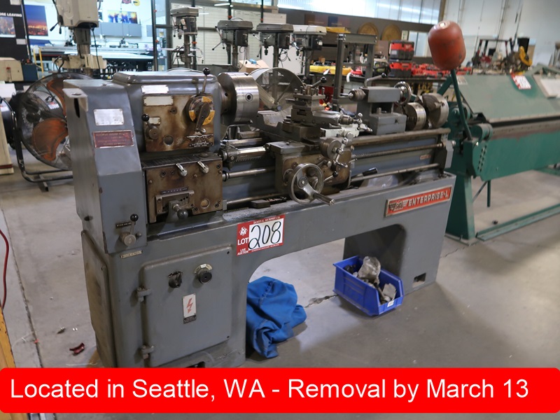 HORIZONTAL LATHE W/14" SWING, 40" BETWEEN CENTERS, TOOL POST, 3-JAW CHUCK, 3 PHASE