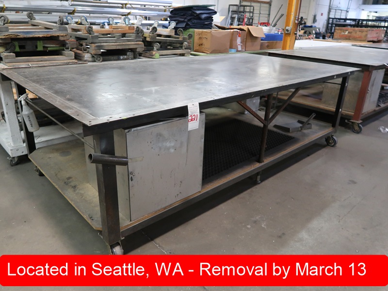 5-1/2' X 10-1/2' STEEL TABLE ON CASTERS