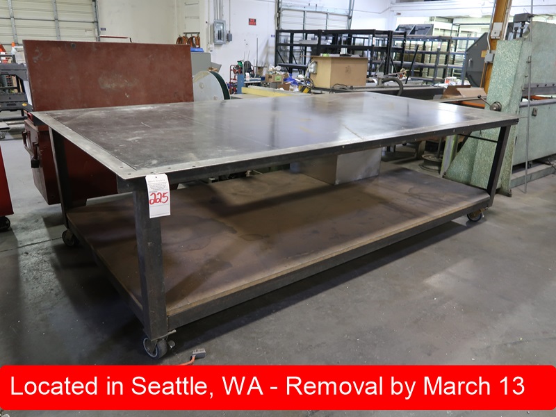 5-1/2' X 10-1/2' STEEL TABLE ON CASTERS