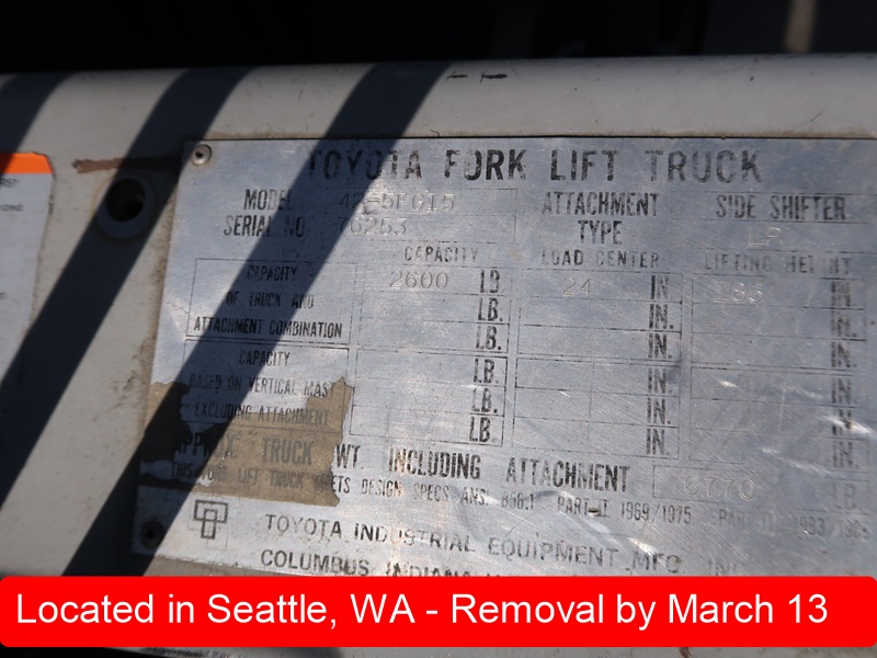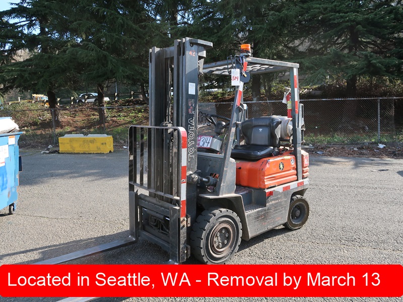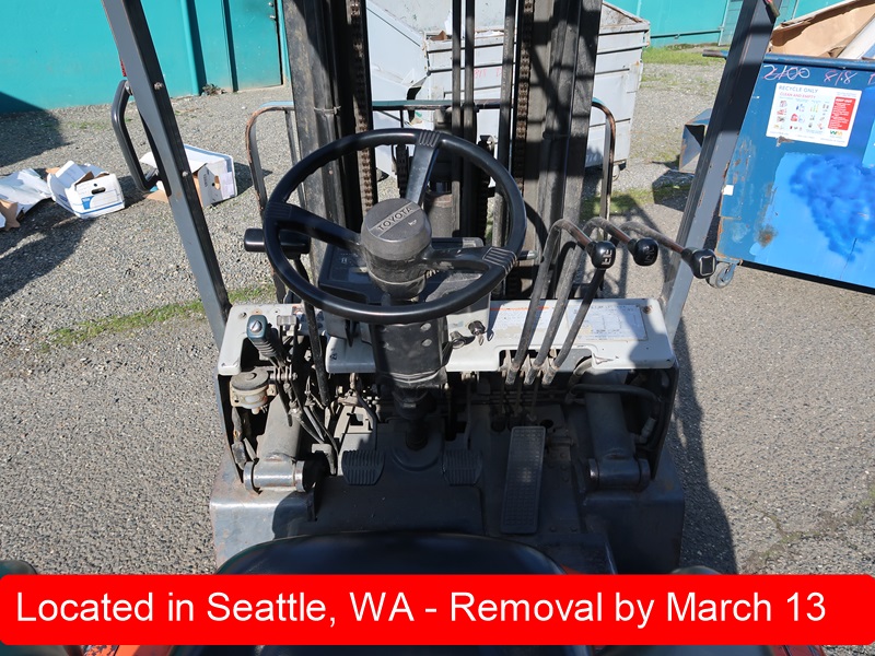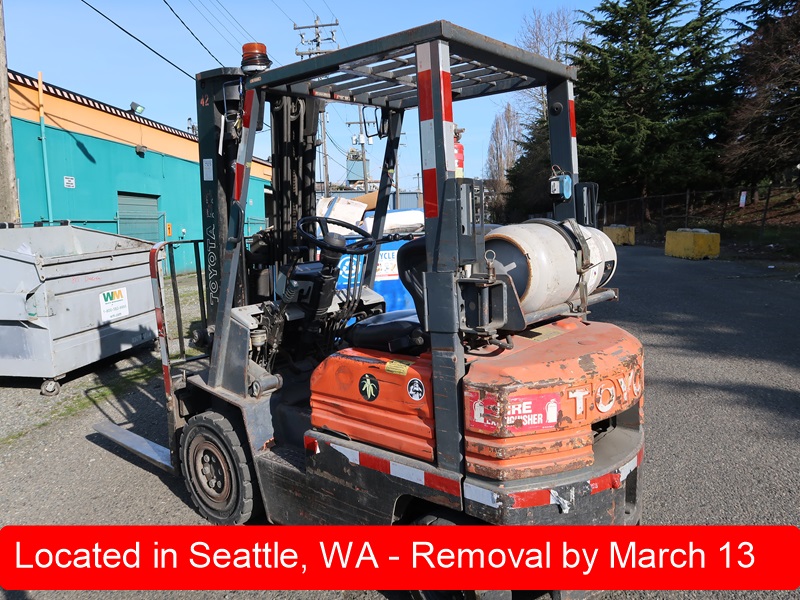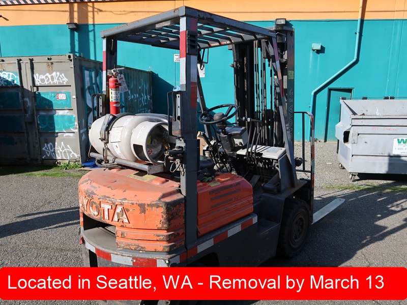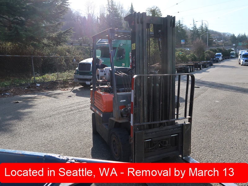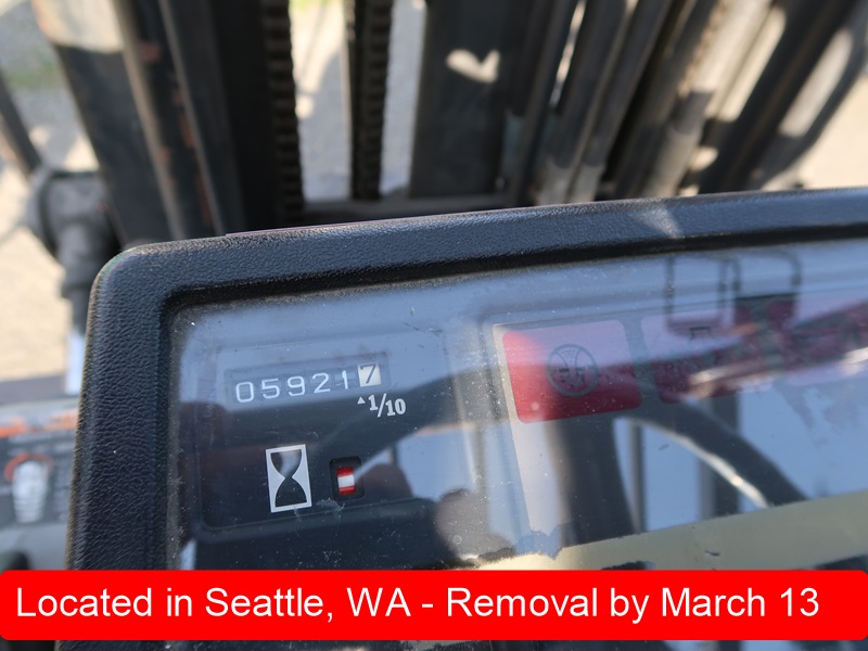 HRT FORKLIFT, 185" 3-STAGE MAST, SIDE SHIFT PROPANE, HOUR METER READS: 5,920 (MUST STAY UNTIL 10 AM, FRIDAY, MARCH 6TH)