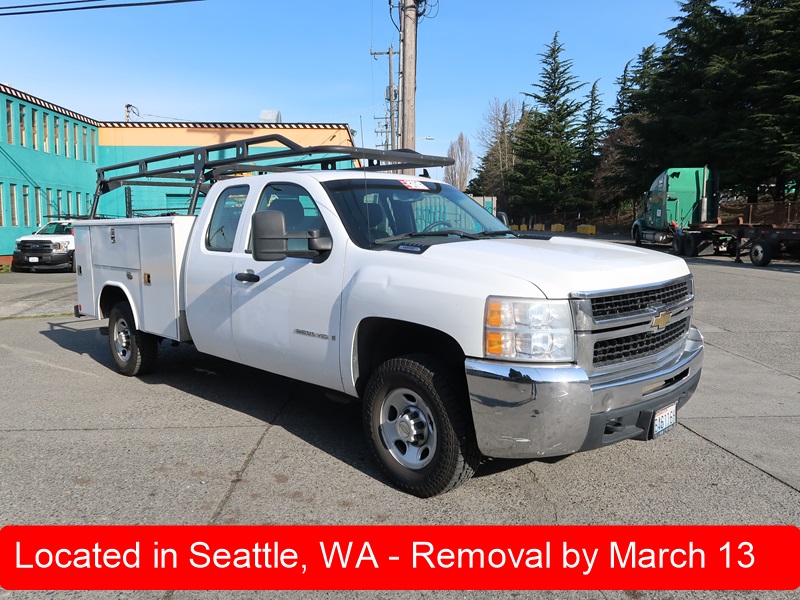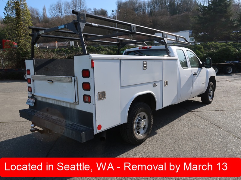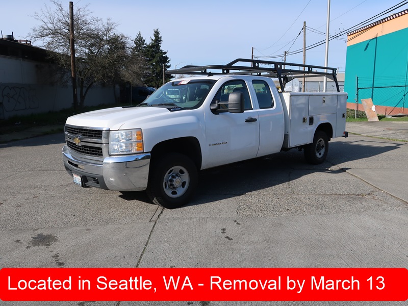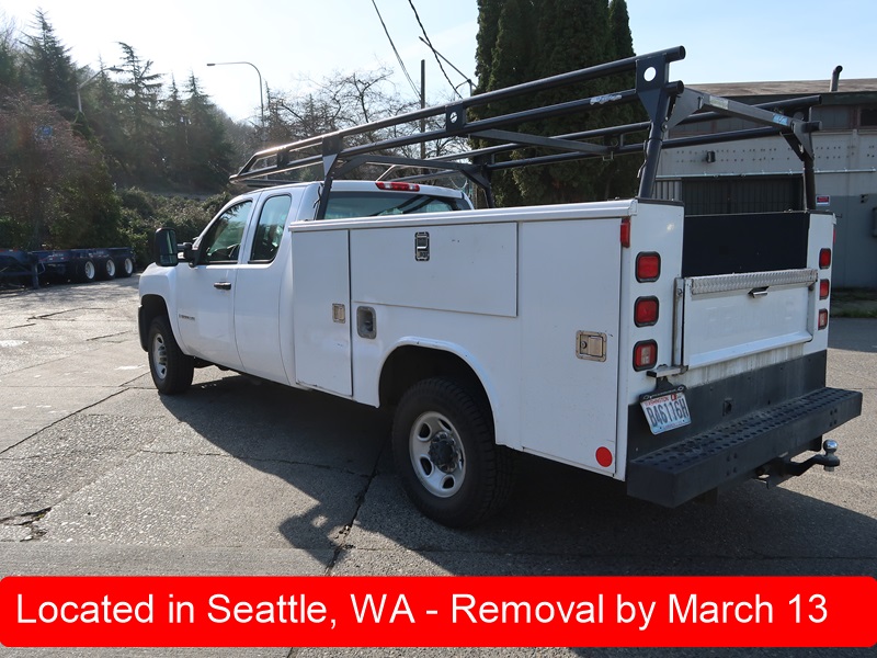 SERVICE BODY TRUCK, GAS, AUTO, CREW CAB, PIPE & LADDER RACK, ODOMETER READS: 112,192 (BUYER NEEDS TO OBTAIN CERTIFIED WEIGHT SLIP TO LICENSE VEHICLE)