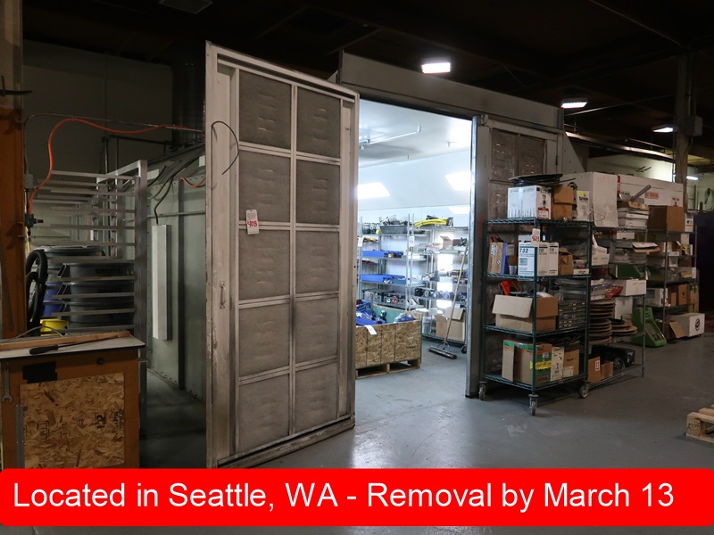 9' X 14' X 26' PAINT BOOTH, 5-HEAD DRY CHEMICAL FIRE SUPPRESSION SYSTEM, (2) SWING DOORS & (1) MAN DOOR (DUCTING BREAKS AT 1ST JOINT)