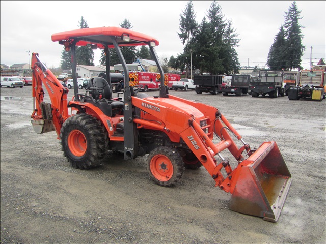 4X4 TRACTOR, 26 HP D1105-E2,HST 3 RANGE TRANS, TL500FRONT LOADER BUCKET, BT820BACKHOE, HYD THUMB, PTO,CANOPYHOUR METER READS: 1,203