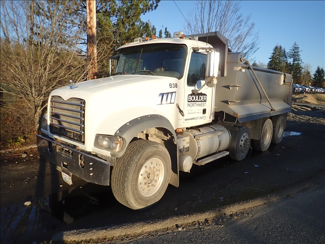 TRI/A DUMP TRUCK, 15'5" STEELBOX, HIGH LIFTGATE, TARPSYSTEM, 535 HP MP8-435,18 SPD, 44,000 REARS,CAMELBACK SUSPENSION