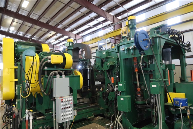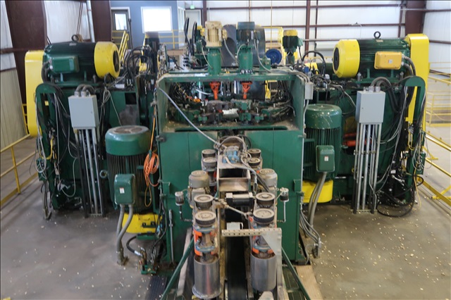 SMALL LOG PROCESSOR (REBUILT IN ________), 3-1/2"X12" CAPACITIES, 190-400 FPM, 75' VEE-FLIGHT INFEED LOG POSITIONING CONVEYOR, 16" CENTER-TO-CENTER ON FLIGHTS, TOSHIBA 25 HP MOTOR TO REX MERCURY 11.02:1 DOUBLE REDUCER, TEMPOSONIC POSITIONED FLYING LOG TURNER W/MOTOR TO REX MERCURY ROLL DRIVES, CENTER POSITIONING MODULE, TEMPOSONIC POSITIONED SIDE HEAD CANTERS W/17" FACE KEY KNIFE CONVERSION, 250 HP MOTORS, TEMPOSONIC POSITIONED TOP & BOTTOM PROFILES W/KEY KNIFE CONVERSION, 300 HP MOTORS, TEMPOSONIC POSITIONED VERTICAL SINGLE ARBOR 8" GANG W/300 HP MOTORS, #3 RETEC SPLINED ARBOR, 23" SAWS, (2) 17' TEMPOSONIC POSITIONED INERTIA BOARD SEPARATORS, SAS 40 HP HYDRAULIC UNIT, SAW GUIDE LUBE SYSTEM W/(2) LUBE TANKS, CONTROL CAB, SUPPORT ELECTRICS, SPARE SAWS, GUIDES & PARTS,