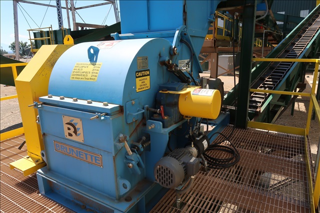 4-KNIFE DRUM CHIPPER (RECONDITIONED IN 2015) W/KEY KNIFE CONVERSION, RELIANCE 150 HP/1190 RPM MOTOR, 2"X8" SCREEN OPENING, HYDRAULIC HOOD UNIT (EQUIP# D-049