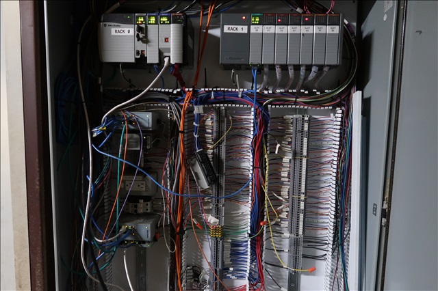 PLC W/(1) 1747-AENTR, (4) AC INPUT & (4) AC OUTPUT MODULES