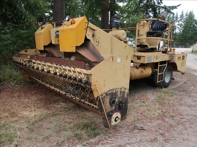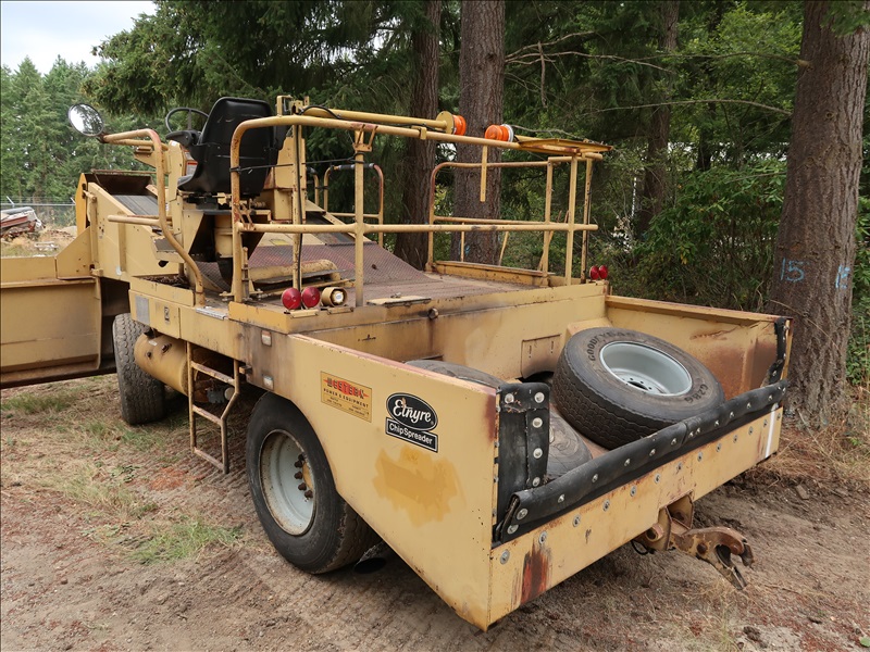 CHIP SPREADER 14' CHIP BOX W 20 MANUAL ADJUSTMENT GATES, 9' DUMP BOX W (2) 18"X16' INCLINE CONVEYOR BELTS, CUMMINS C8.3-C 6 CYL DIESEL ENGINE, 385/65R 22.5 TIRES.