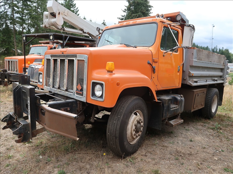 S/A DUMP TRUCK, 10' STEEL BOX, INTERNATIONAL DT/DTA-360/466 6 CYL DIESEL, FLINK SNOW PLOW ATTACHMETN, SPICER TRANSMISSION, 12,000 FRONT 21,200 REAR, PLUM FOR PUP, A/B
