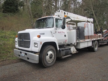 1992 FORD L8000 S/A BOOM TRUCK, 6.6L DIESEL, AUTO, PITMAN BOOM, S/N:1FDXR82A8NVA02142, LIC:25468Y, MILEAGE READS: 223993