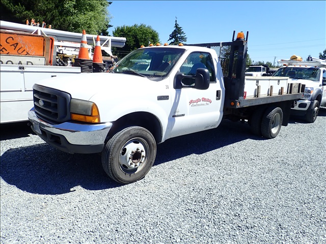1999 FORD F450 FLATBED TRUCK, POWER STROKE, 6 SPD, 10' BED, BOXES, S/N:1FDXF46F5XED85791, LIC:B16956W, MILEAGE READS: 208880