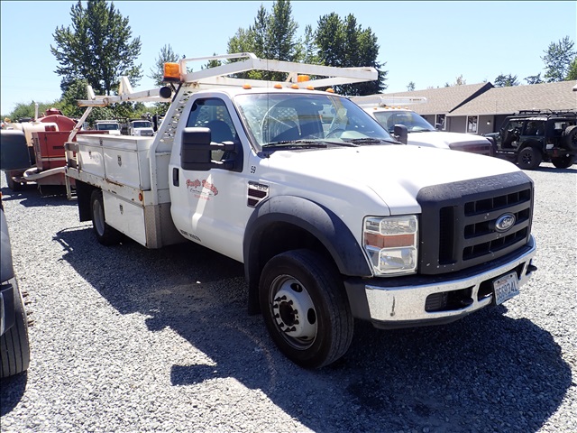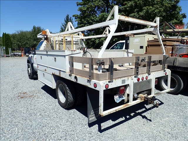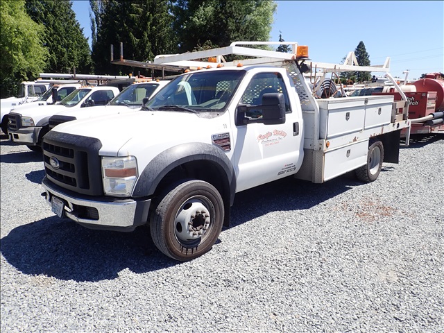 2008 FORD F450 FLATBED TRUCK, POWER STROKE, AUTO, 12' BED W/RACK, BOXES, S/N:1FDXF46R68EC07237, MILEAGE READS: 83531