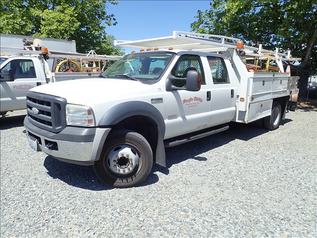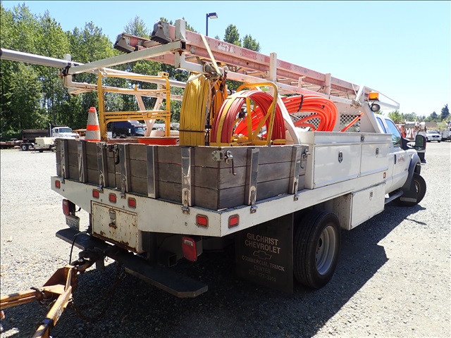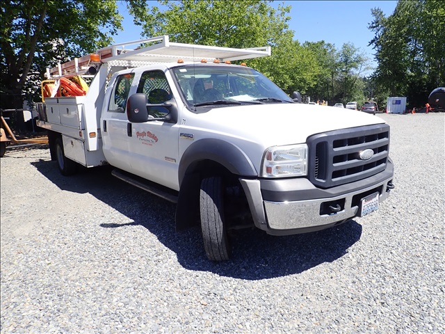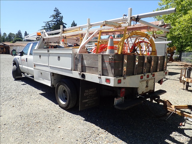 2007 FORD F450 CREW CAB FLATBED TRUCK, POWER STROKE, AUTO, 12' BED W/RACK, BOXES, S/N:1FDXW46P27EA87417, MILEAGE READS: 99450