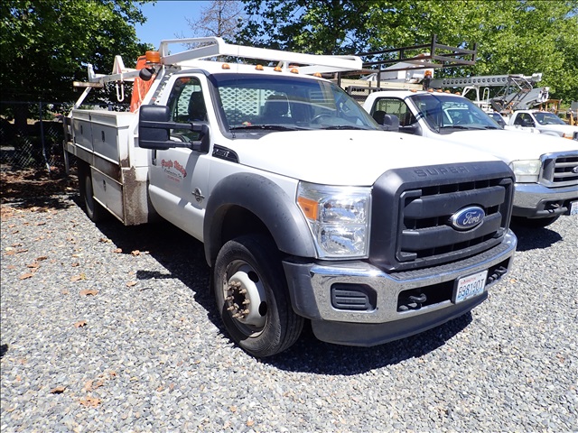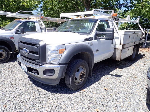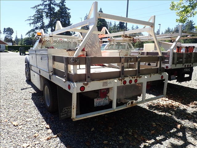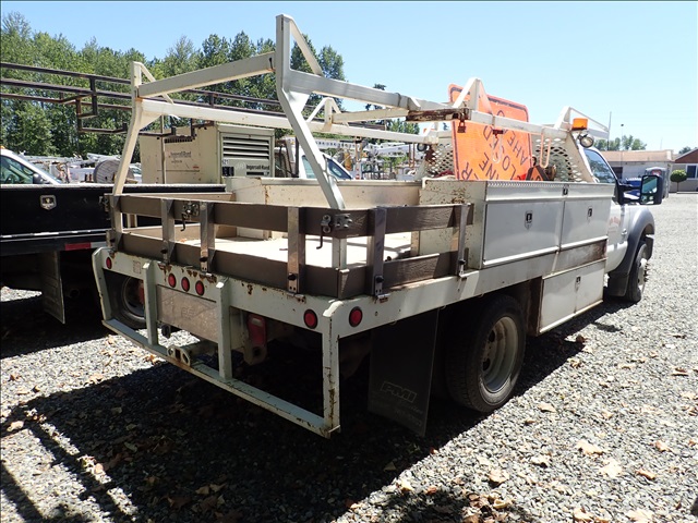 2011 FORD F450 FLATBED TRUCK, POWER STROKE, AUTO, 12' BED W/RACK, BOXES, S/N:1FDUF4GT6BEB96972, MILEAGE READS: 67309
