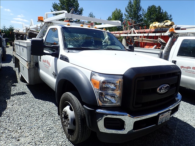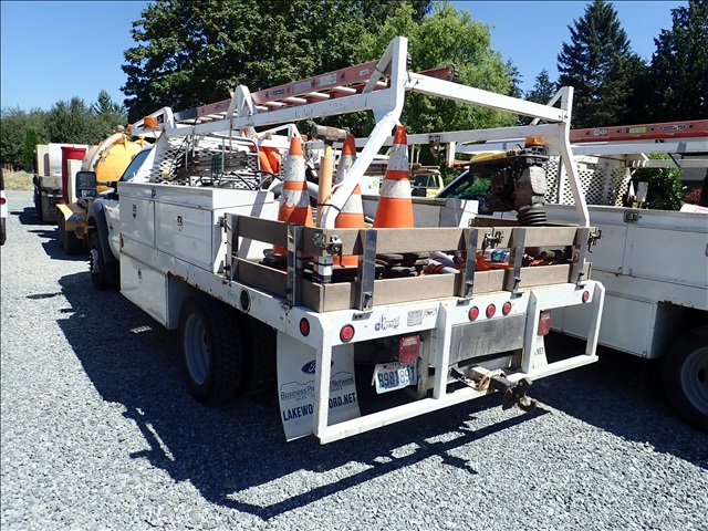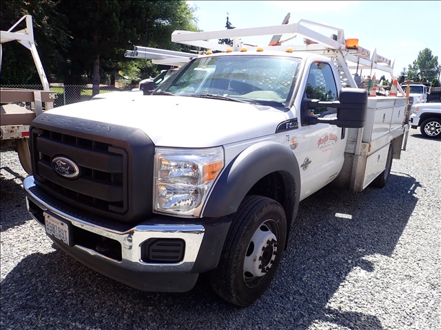 2011 FORD F450 FLATBED TRUCK, POWER STROKE, AUTO, 12' BED W/RACK, BOXES, S/N:1FDUF4GT7BEA24501, MILEAGE READS: 66165