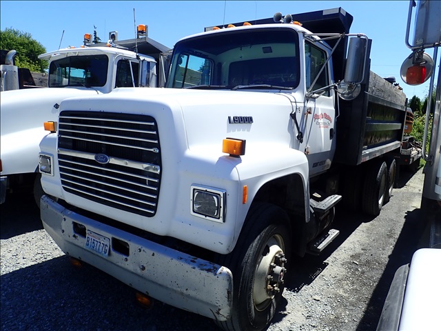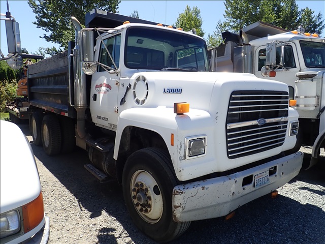 1993 FORD L9000 T/A DUMP TRUCK, CAT 3406, 13 SPD, SPRING BEAM SUSPENSION, 15' STEEL BOX, S/N:1FDZU90X7PVA40050, MILEAGE READS: 173084