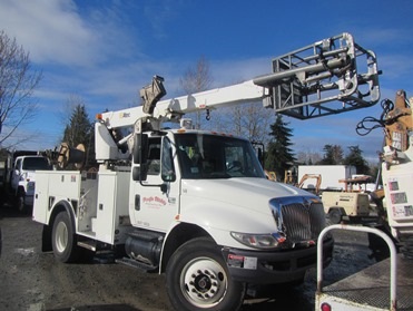 2007 INTERNATIONAL 4300 S/A BUCKET TRUCK, DT466, AUTO, ALTEC A40P BOOM, HYDRAULIC REEL CARRIER, RAMSEY SIDE WINCH, S/N:1HTMMAAM37H447742, MILEAGE READS: 51430