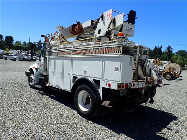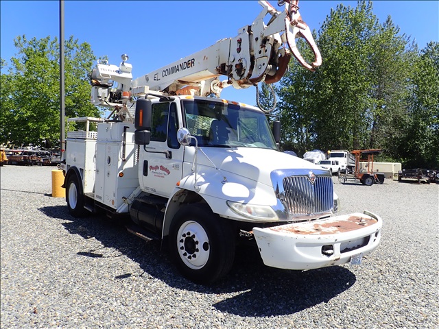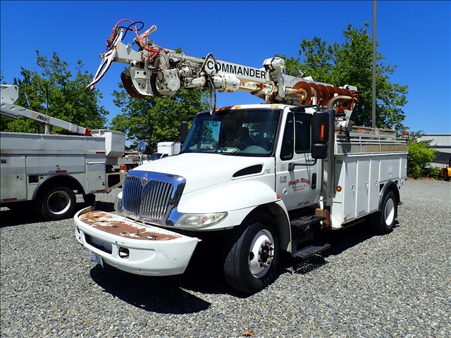2003 INTERNATIONAL 4400 S/A DIGGER DERRICK TRUCK, DT466, 10 SPD, TEREX COMMANDER C4040 BOOM, PURE SINE INVERTER, POLE HANDLER, CAPSTAN, BRADEN WINCH, S/N:1HTMKAARX3H58948Y, MILEAGE READS: