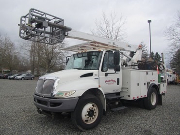 2009 INTERNATIONAL DURA STAR S/A BUCKET TRUCK, MAXFORCE, AUTO, ALTEC A40P BOOM, HYDRAULIC REEL CARRIER, RAMSEY SIDE WINCH, S/N:1HTMMAAM69H050173, MILEAGE READS: 105216