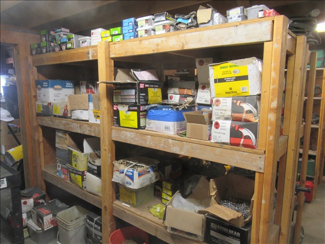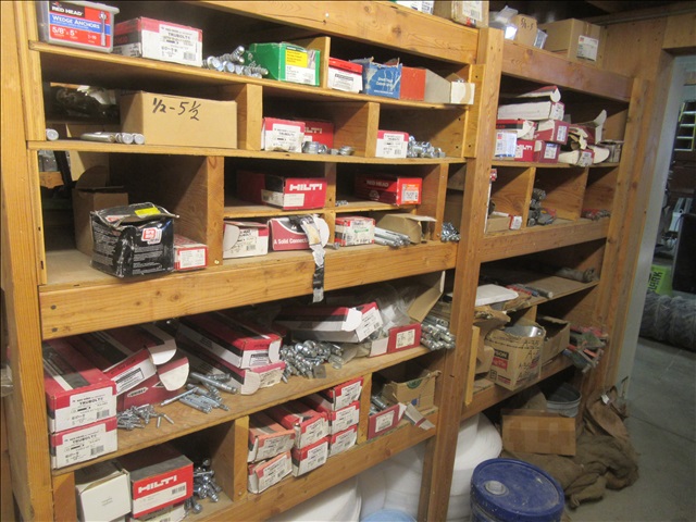 GROUP OF PIPE FITTINGS, STRONGTIE, ANCHOR BOLTS, TRUE BOLTS, CHAIN, SCREWS, NUTS, NAILS, WASHERS & ALL THREAD