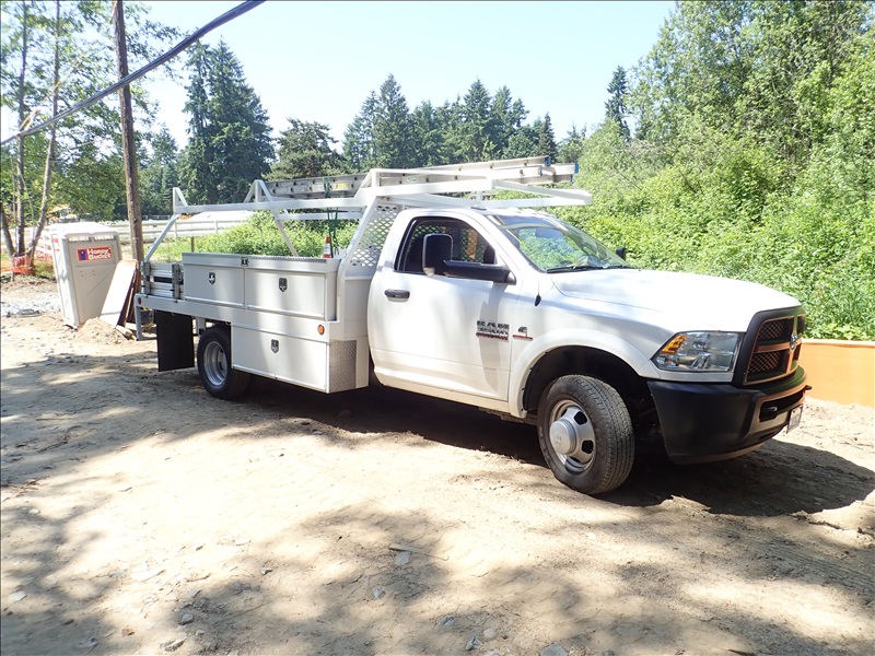 FLATBED UTILITY TRUCK, CUMMINS, AUTO, 12' BED W/RACK, TOOL BOXES, AUX FUEL TANK