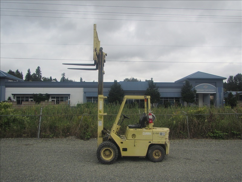 6,000 LB DUAL PNEUMATIC TIREFORKLIFT, 124" FORK HEIGHT,2-STAGE MAST, 4 CYL PROPANEHOUR METER READS: 748