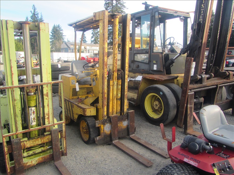 4,000 LB HRT FORKLIFT, 180"FORK HEIGHT, 2-STAGE MAST,TILT, 4 CYL, GASHOUR METER READS: 7,968(TURNS OVER, WON'T START)