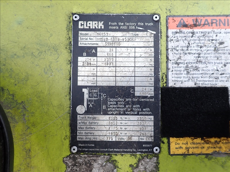 3,000 LB HRT 36V ELECTRICFORKLIFT, 204" FORK HEIGHT,3-STAGE MAST, SIDE SHIFT, FORKPOSITIONERS *NO FORKS*