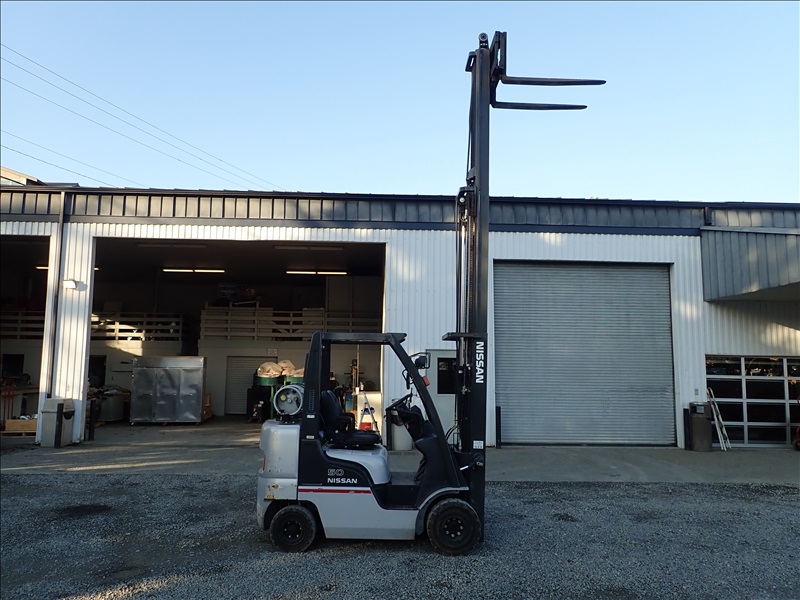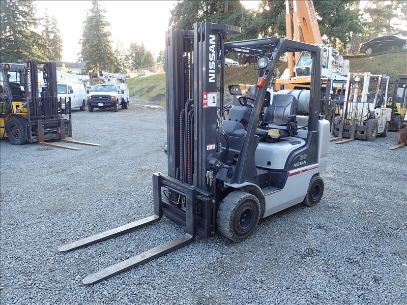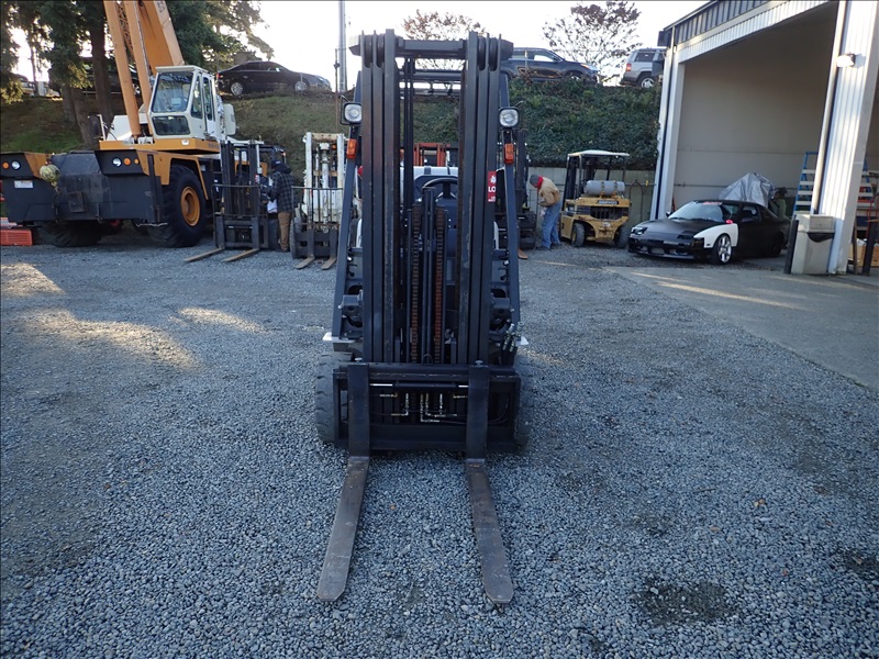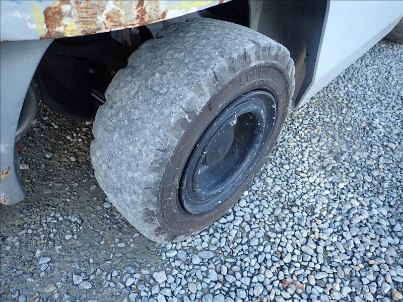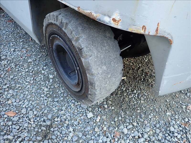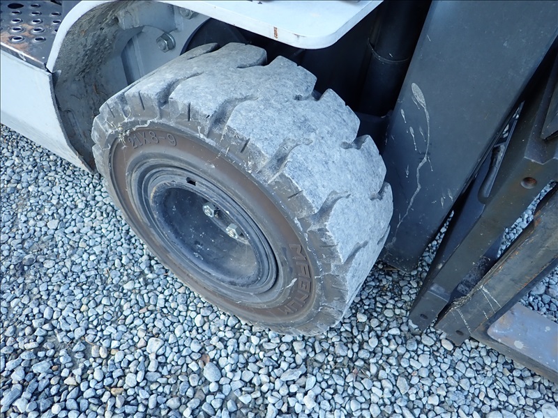 4,100 LB SOLID TRACTION TIRE FORKLIFT, 187" FORK HEIGHT 3 STAGE MAST, SIDE SHIFT, 4CYL LPG, HOUR METER READS 744
