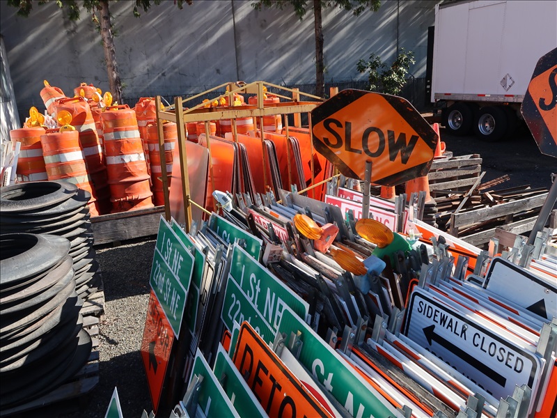 ROAD SIGNS, BARELLS, CANDLE STICKS, CONES, BARRICADES, STANDS, RACKS