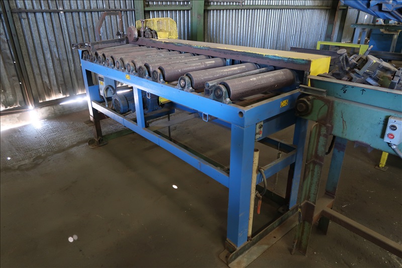 8' SINGLE HEAD MOULDER FEED TABLE W/24" ROLLS, HITACHI 3 HP/40 RPM GEARHEAD MOTOR