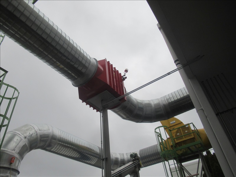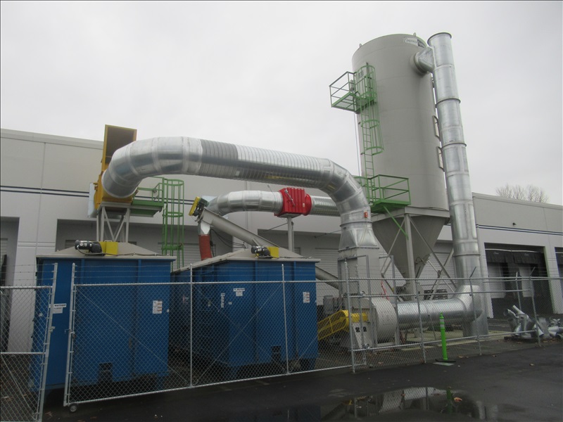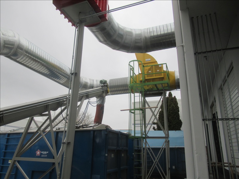 BAGHOUSE TO INCLUDE: CLARKES ABORT GATE, CLARK PYROGUARD LXC-2 SUPPRESSION SYSTEM, 30,000 CFM, (2) WASTEQUIP 40 YD DUMPSTERS W/AUGER TOPS, TWIN CITY 100 HP BLOWER, AUGER CONVEYOR, GARDNER DENVER BLOWER