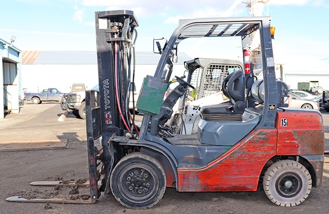6,500 LB PNEUMATIC FORKLIFT W/ SIDE SHIFT & FORK POSITIONING, THREE STAGE MAST, SOLID PNEUMATIC TIRES, LP FUEL (FORKLIFT LOCATED AT 335 NW HESS STREET, MADRAS, OR 97741 - PREVIEW BY APPOINTMENT ONLY, CONTACT STEVE KENISON - 541.325.1698 - ITEMS MUST BE REMOVED BY 2/22/2019)