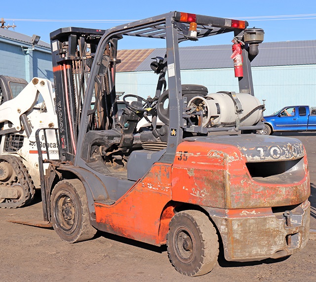 6,500 LB PNEUMATIC FORKLIFT W/ SIDE SHIFT & FORK POSITIONING, THREE STAGE MAST, SOLID PNEUMATIC TIRES, LP FUEL (FORKLIFT LOCATED AT 335 NW HESS STREET, MADRAS, OR 97741 - PREVIEW BY APPOINTMENT ONLY, CONTACT STEVE KENISON - 541.325.1698 - ITEMS MUST BE REMOVED BY 2/22/2019)