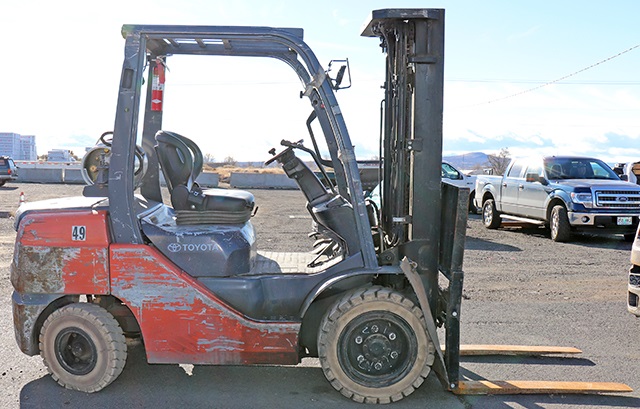 6,500 LB PNEUMATIC FORKLIFT W/ SIDE SHIFT, THREE STAGE MAST, SOLID PNEUMATIC TIRES, 42" POLISHED & TAPERED FORKS, LP FUEL (FORKLIFT LOCATED AT 335 NW HESS STREET, MADRAS, OR 97741 - PREVIEW BY APPOINTMENT ONLY, CONTACT STEVE KENISON - 541.325.1698 - ITEMS MUST BE REMOVED BY 2/22/2019)