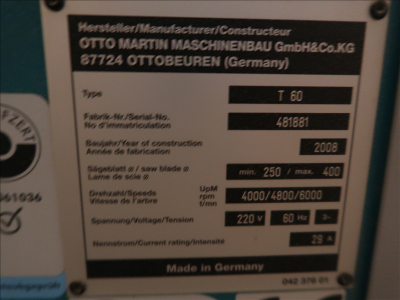 SLIDING PANEL TABLE SAW W/SCORING BLADE & MARTIN TOUCH SCREEN