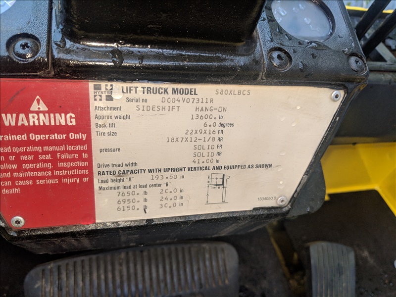 7,000 LB FORKLIFT, 3 STAGE MAST, 193.5 INCH HEIGHT, HRT, SIDE SHIFT, PROPANE