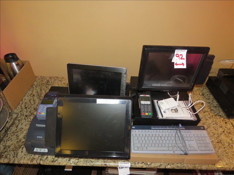 LOT, POS SYSTEM TO INCLUDE: (1) CASH DRAWER, (3) MONITORS, (2) SLIP PRINTERS & PORTABLE CARD READER