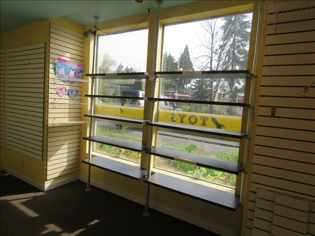 95" SHELVING ON STEEL POLES IN THIS WINDOW