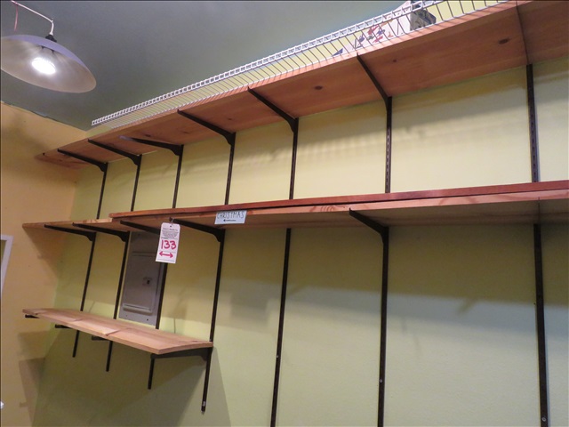 LOT, WOOD SHELVES & BRACKETS ON THIS WALL