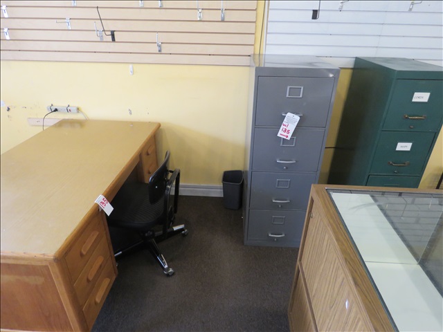LOT, 6' WOOD DESK, (2) METAL 4-DRAWER FILING CABINETS & CHAIR