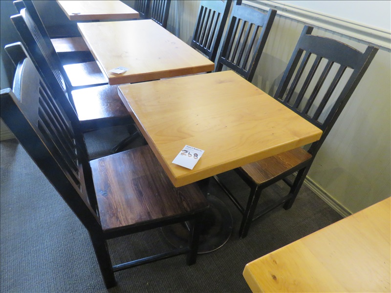 24" X 24" SINGLE PEDESTAL BUTCHER BLOCK DINING TABLE W/(4) CHAIRS