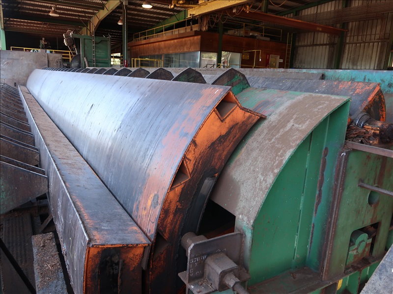 60' DOUBLE ACTING QUADRANT FEEDER W/BALDOR 40 HP MOTOR, HYDRAULIC OPERATED 60' 3-SECTION LOG STOP & LOADER