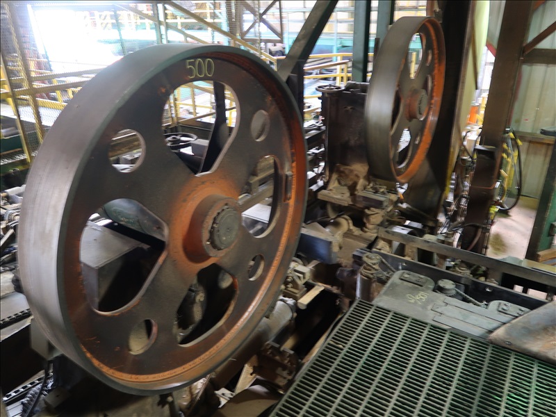 5' TEMPOSONIC POSITIONED VERTICAL TWIN BAND RESAW W/RELIANCE 150 HP/1,190 RPM MOTORS, 1" TOP & BOTTOM WHEELS, HYDRAULIC HOODS, APPROX 25' POWERED INFEED ROLLCASE, (6) 8" X 30" CANTED ROLLS, 3-1/2' 4-STRAND INFEED TRANSFER W/CANT TURNER, PRESS ROLLS, SKK & MOTOR TO SKK DRIVES, 26' POWERED OUTFEED ROLLCASE W/(9) 8-1/2" X 72" KNURLED & SMOOTH ROLLS, 7' X 11-STRAND OUTFEED BOARD PICKER TRANSFER, SKK GEARHEAD DRIVE MOTOR, 60 HP SETWORKS HYDRAULIC UNIT, ALLEN BRADLEY MCC & PLC, SPARE SAWS, GUIDES & PARTS